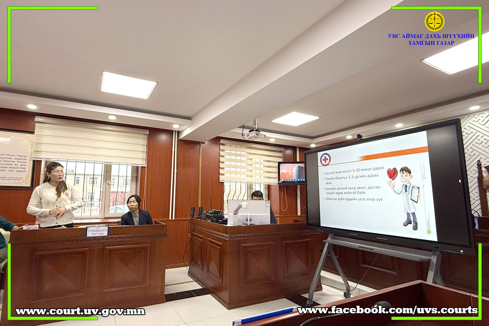 Увс аймгийн нэгдсэн эмнэлгийн Цусны Салбар Төвийн эрхлэгч, их эмч Ц.Нандинбаяр нь “Цусны донорын тухай ойлголт” сэдвээр нийт шүүгч, шүүхийн захиргааны ажилчдад сургалт зохион байгуулав.
