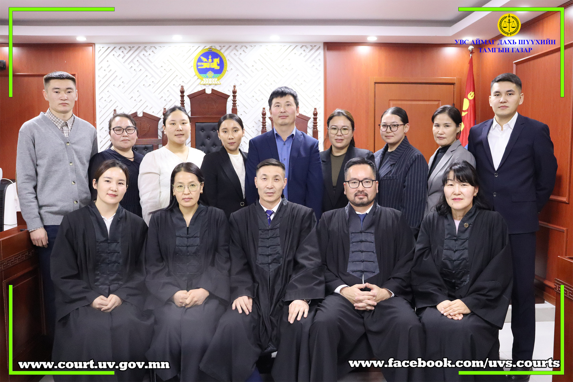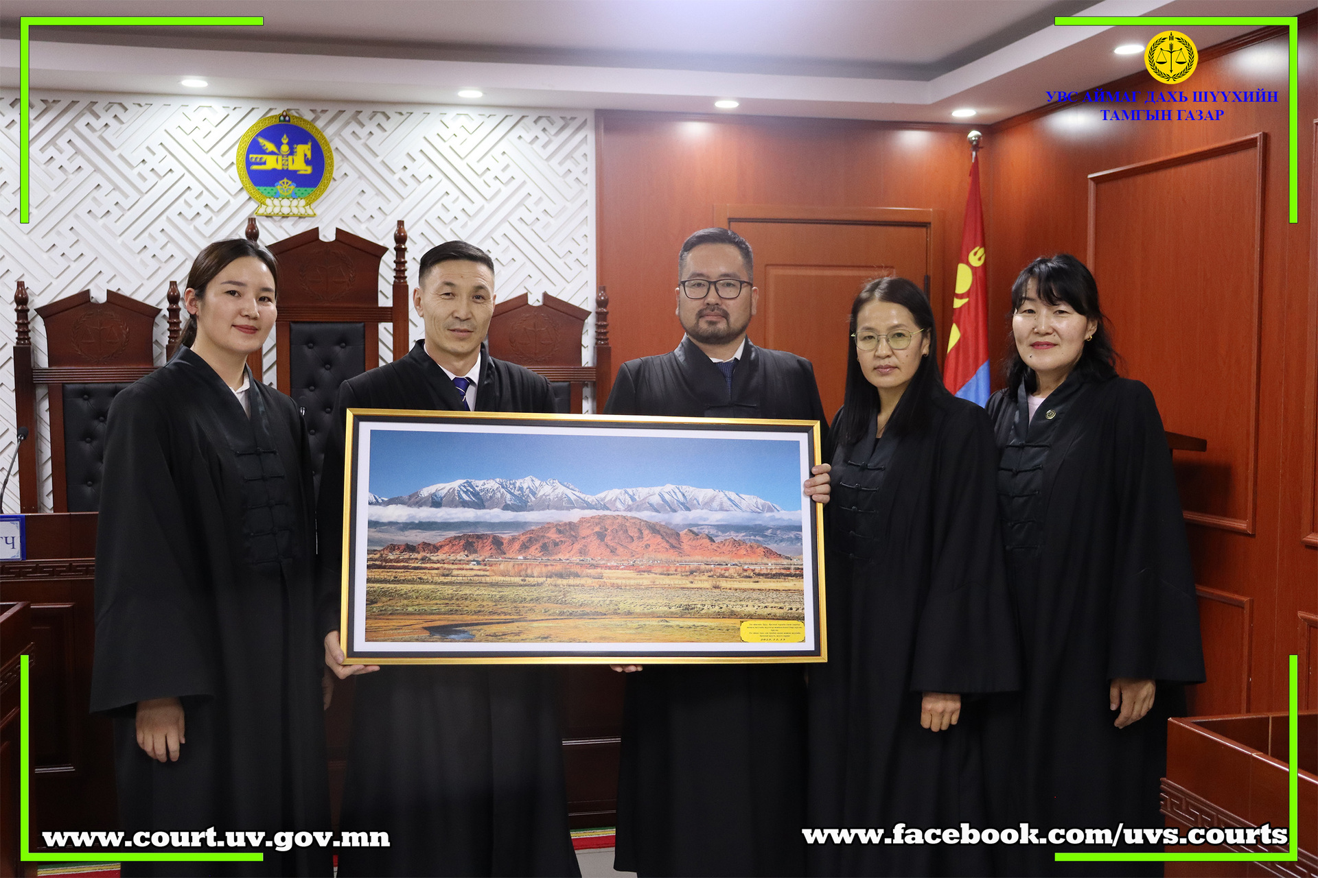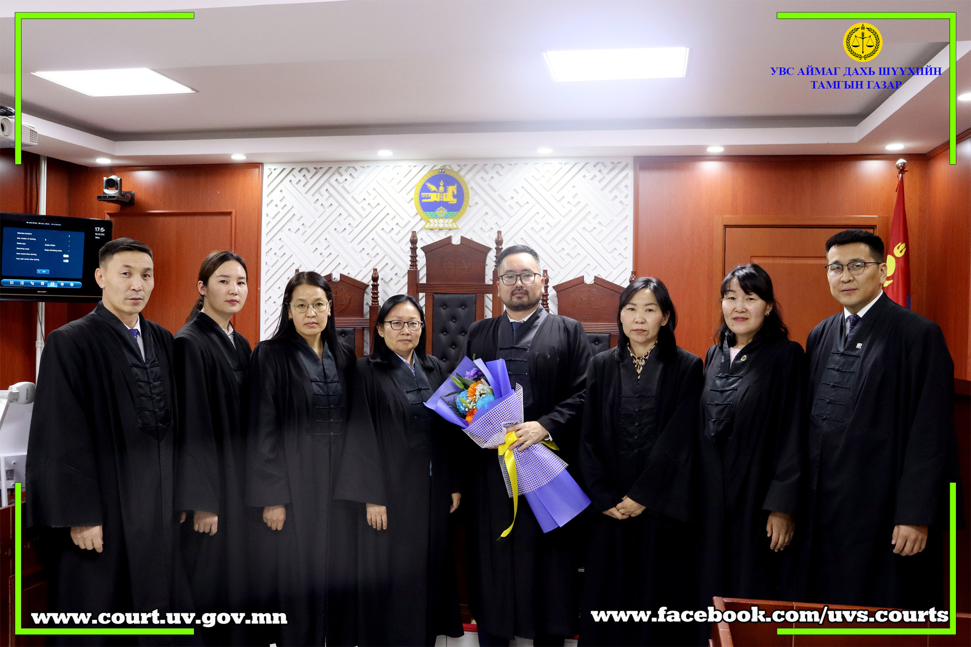 Тус шүүхийн хамт олон Монгол Улсын Ерөнхийлөгчийн зарлигийг уншиж сонордуулах хүндэтгэлийн арга хэмжээг 2025 оны 12 дугаар сарын 15-ны өдөр зохион байгуулан, шүүгч Б.Мөнхзаяад баяр хүргэж, ажлын амжилт хүсэн ерөөлөө.