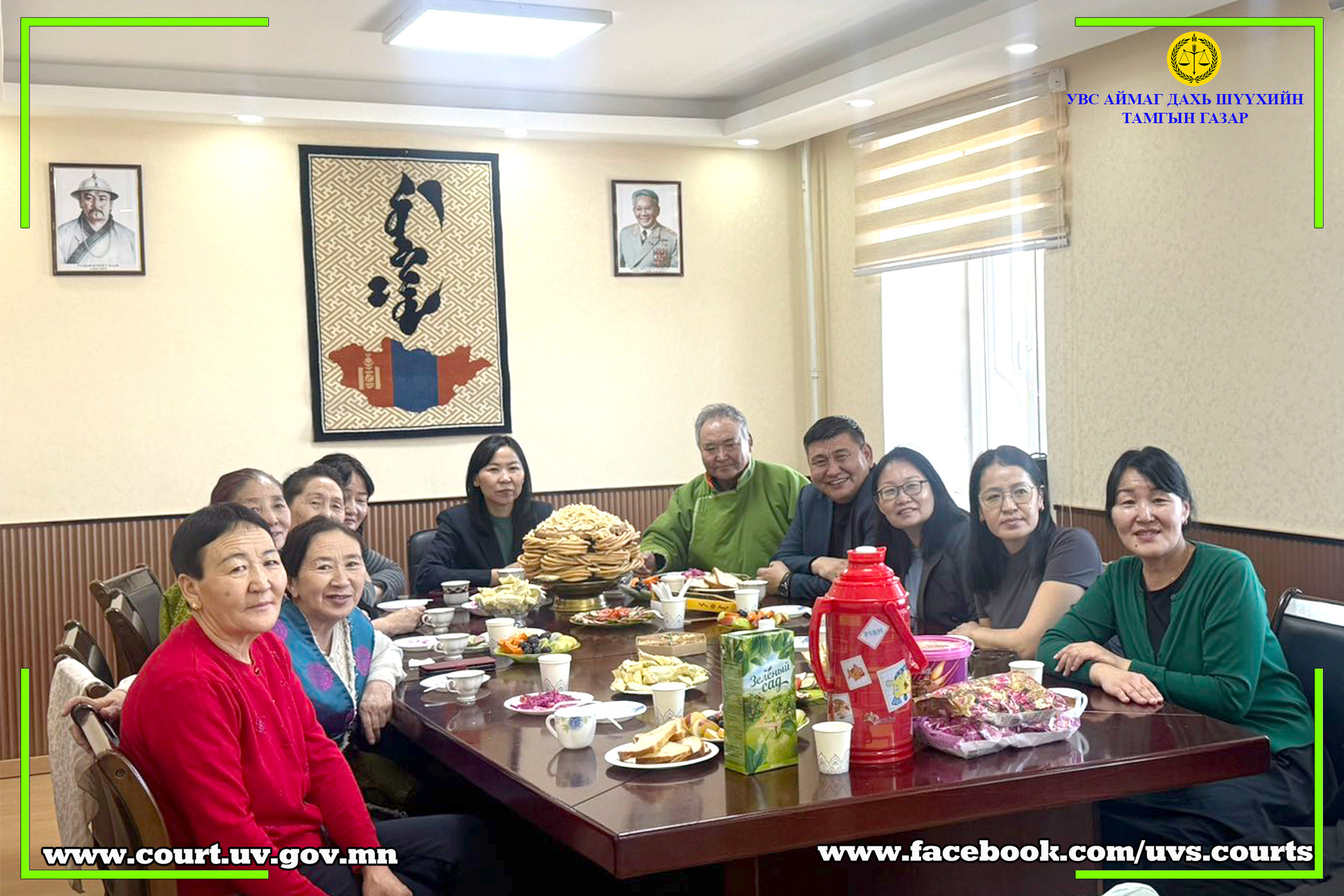 ХVII жарны "Сүрээр дарагч" хэмээх гал морин жилийн сар шинийг угтан, Увс аймгийн шүүхийн ахмад шүүгч, ахмад ажилтнуудыг хүлээн авч, хүндэтгэл үзүүллээ.